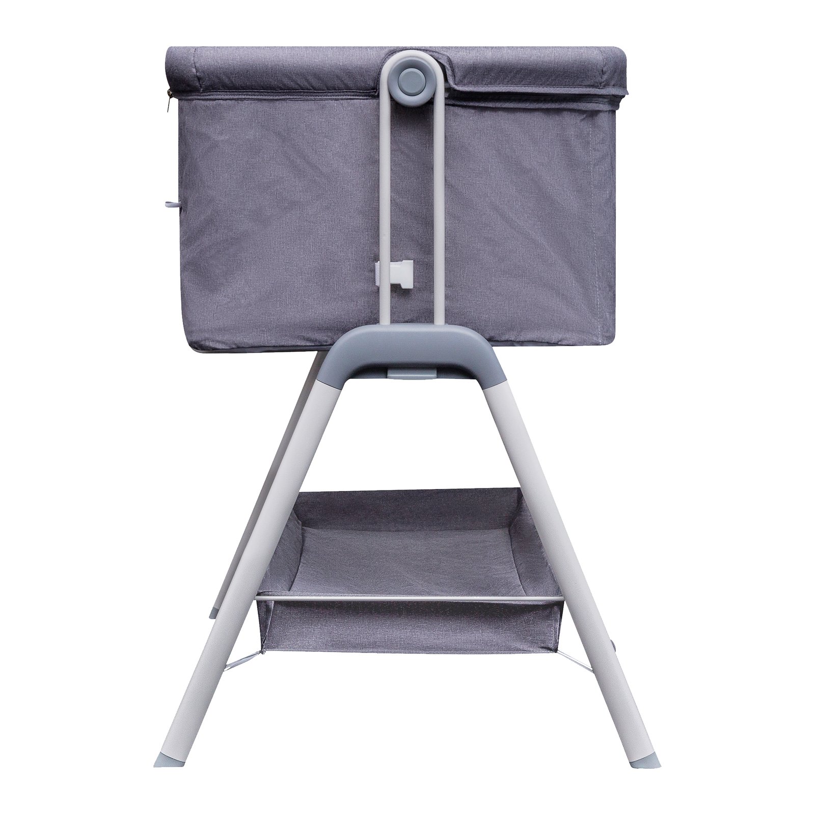 This baby side sleeper also comes with a storage caddy which is situated directly underneath the crib. The storage compartment is big enough to house all the essentials that any new parent could need throughout the day and night such as bottles, swaddles, nappies and wipes. The storage compartment is attached securely and firmly to the sturdy aluminium legs.
