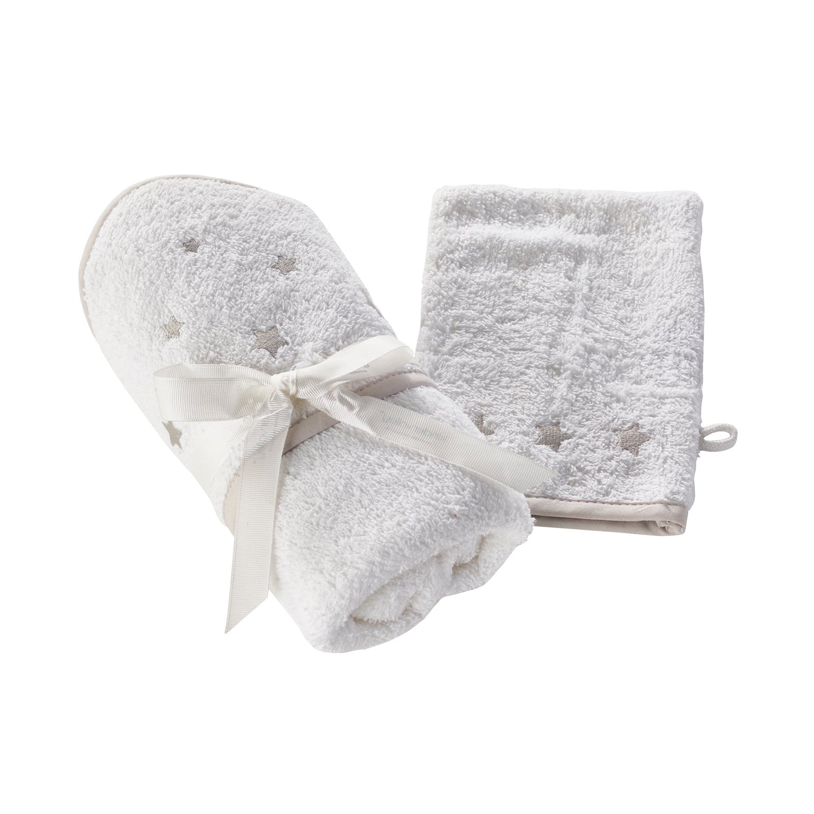 Wrap up after bath time with our stars print hooded towel, 100% cotton this product is soft on yours baby skin and will get them dry in no time. the wash mitt is perfect for gently washing your baby.