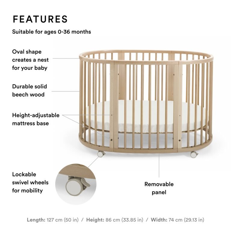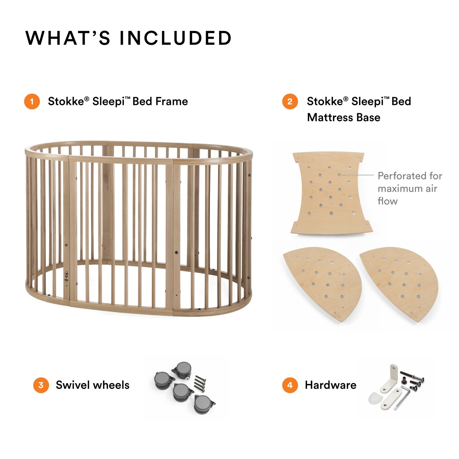 Your baby’s crib is the heart of your nursery. It should be beautiful, functional and above all, safe and soothing for your little one. Made of solid European beech wood, with adjustable height, Stokke Sleepi accommodates the changing needs of your growing child. Soft oval design cocoons your baby offering comfort and familiarity for restful sleep and the sweetest of dreams. Stokke Sleepi Bed can be used from birth to 5 years so your child can enjoy their bed throughout childhood. Adjust the height position of the mattress as your child gets bigger and reaches the curious climbing stage. Once your child is old enough to get in and out of the bed on their own, you can remove the wheels and one side of the bed for easy access. This will boost your childs independence as well.The Stokke Sleepi concept has been developed with sound sleep and safety in mind. It is available with a new firm and breathable Sleepi mattress which exceeds the highest safety standards .Accessorize with the breathable mesh liner and high-quality textiles.