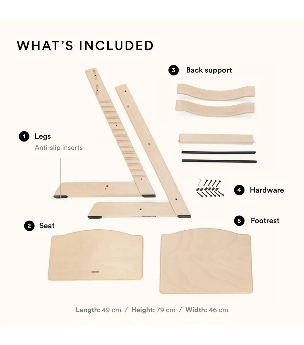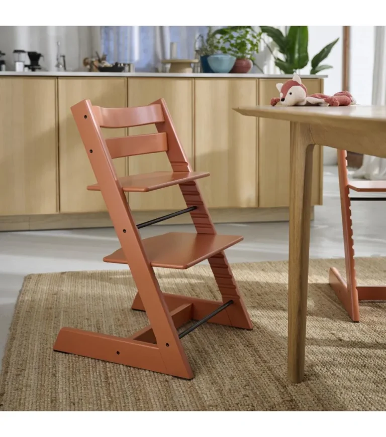 Bring home the Stokke Tripp Trapp Chair to offer your kiddo a relaxing dinner time. This chair comes directly to your dining table height, making your little one come closer to the family during a meal. Made from premium beech wood, this chair delivers a sturdy frame. The height and depth adjustable seat and footplates ensure seamless movement to keep your child relaxed and give your little one ample back and foot support. It does not hamper your kiddo’s seating posture, allowing them to sit upright throughout.