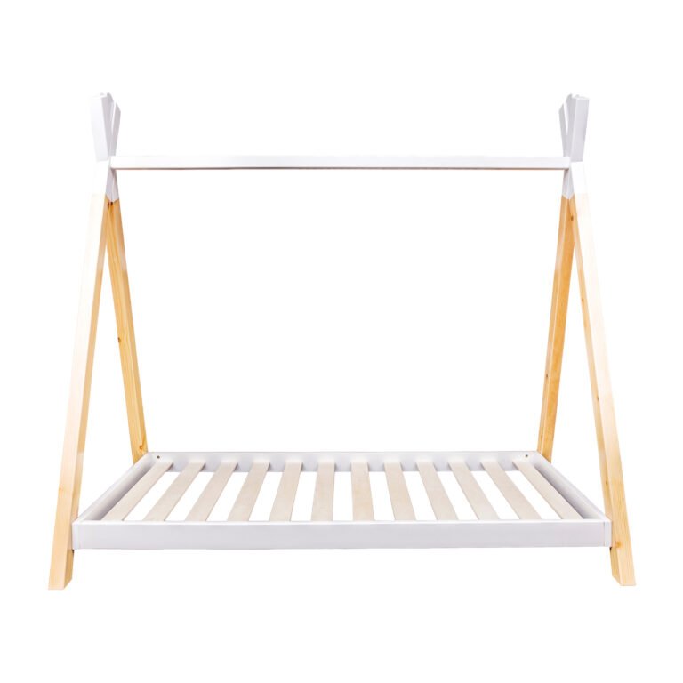 The kid’s teepee bed frame is made from durable solid pine wood and is painted in a non-toxic stylish white, whilst the central frame has a modern natural look. The toddler bed is incredibly easy to assemble with all instructions and tools included. This children’s bed is the ideal bed for kids.