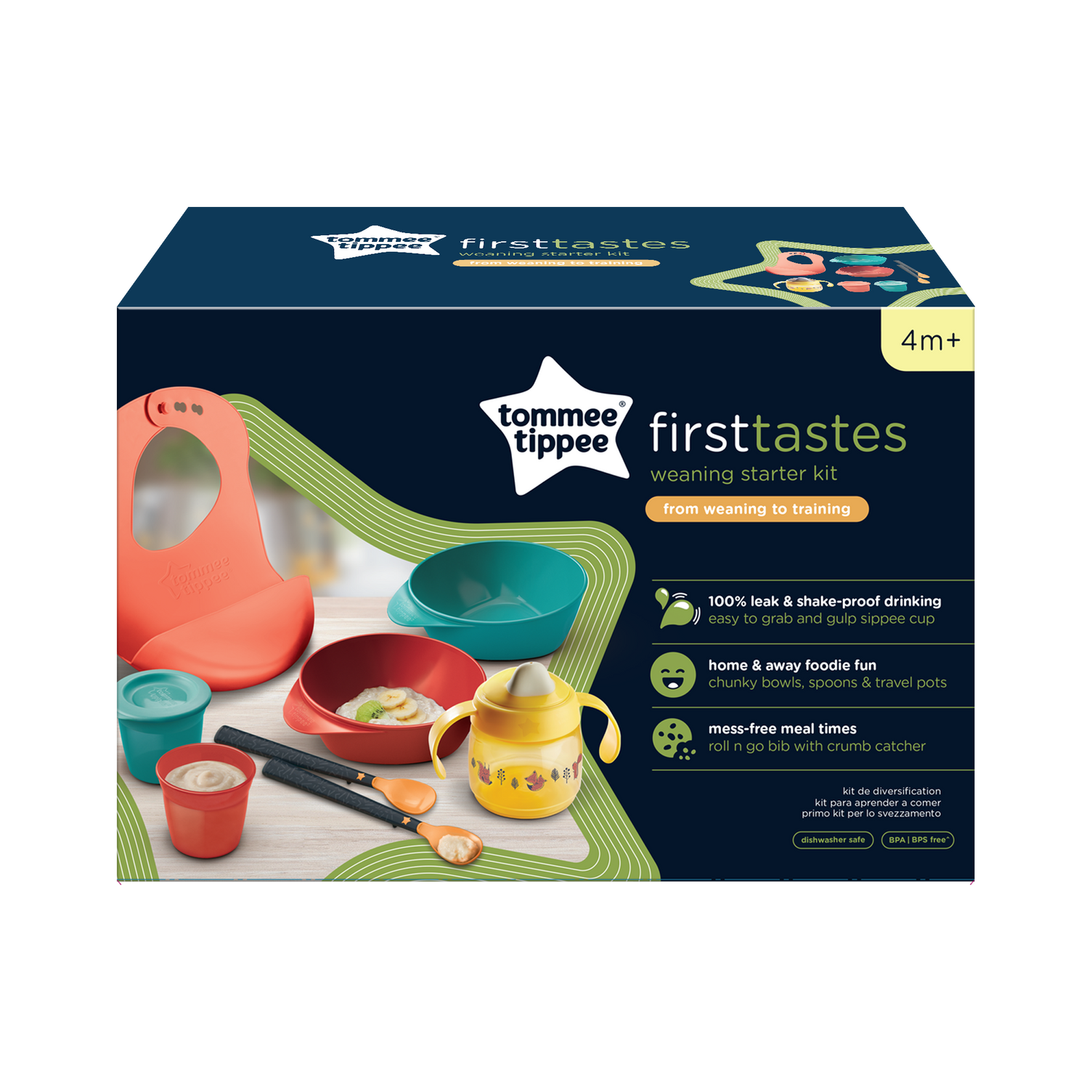 Introducing new foods and tastes to your little one can be a fun and messy adventure. this weaning kit contains everything you need to start introducing sold food to your baby and keep mealtimes fun. the take anywhere roll ānā go bib has a wipe free surface and crumb catcher for messy eaters. while the easy-scoop bowls are designed for fuss free feeding whether youāre using fingers or trying our our widse-scoop spoons that are soft on little mouths. the weaning sippee cup is the perfect choice for your babyās first sips, with its super soft spout thatās gentle on little gums, and large handles that are easy to grip. and because life with a baby is messy enough, a two-piece, nonĀspill valve keeps mess to a minimum.