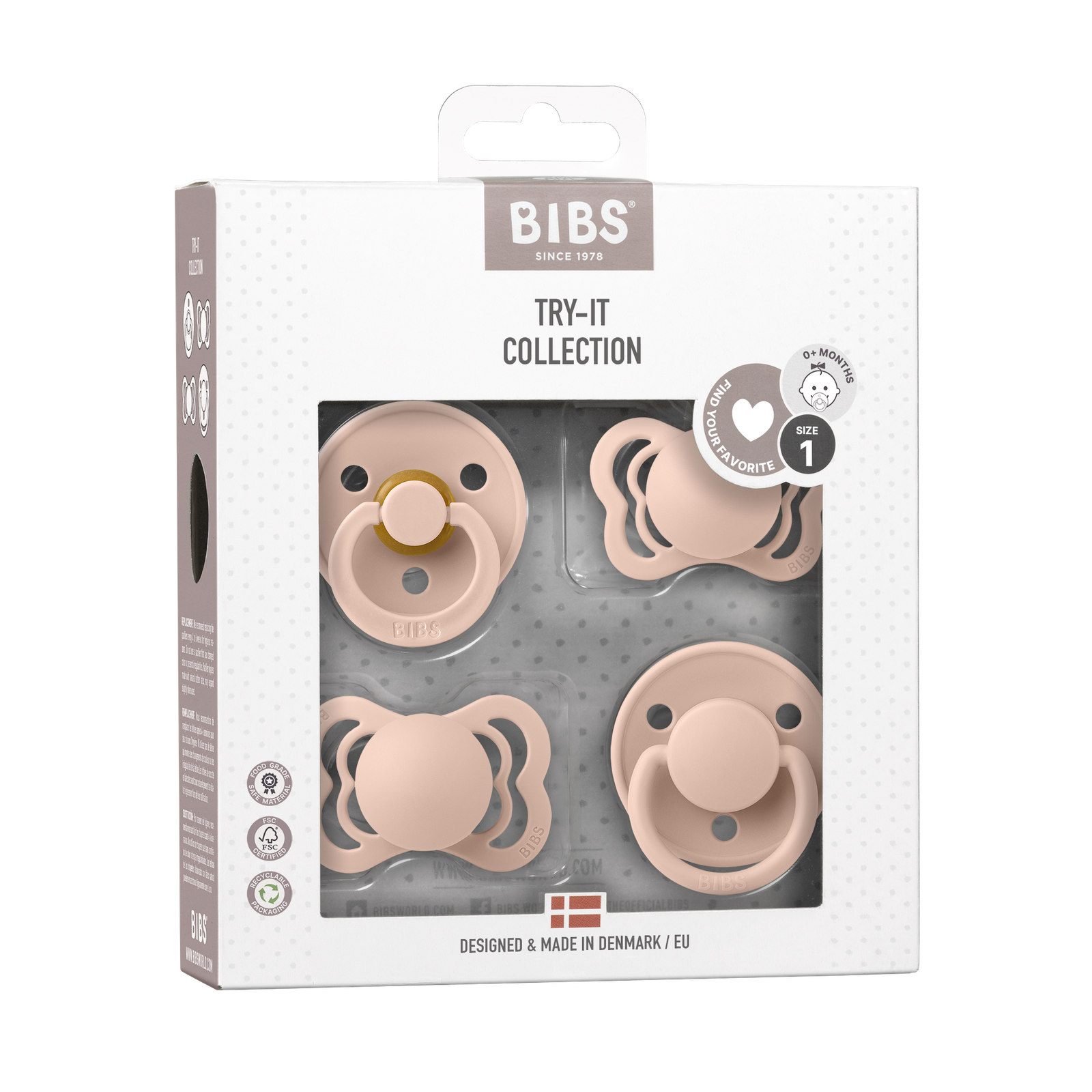 Understanding this, BIBS has developed the Try-it Collection, a thoughtful selection designed to make the process of finding the ideal pacifier simpler and more enjoyable. With the Try-it Collection, parents receive a curated set of four different pacifiers, each with a distinct nipple shape and material, allowing parents to test a variety of styles. This collection includes both round and orthodontic shapes in natural rubber latex and silicone, giving babies the chance to experience different textures and designs. The BIBS Try-it Collection is the perfect way for parents and babies to embark on the journey of finding that “perfect match” pacifier, one that offers comfort, quality, and familiarity, all while making parenthood just a bit easier.
