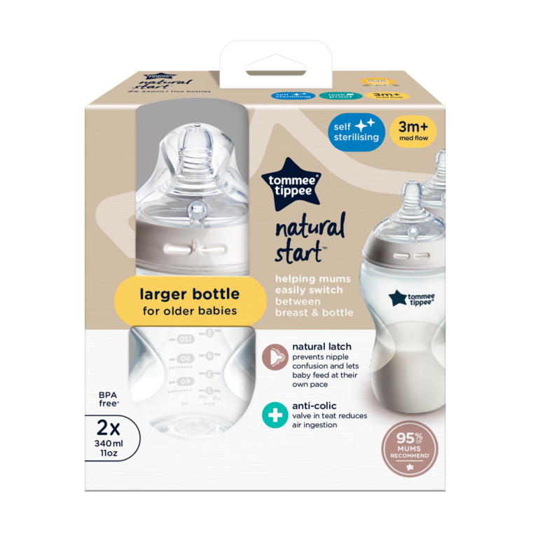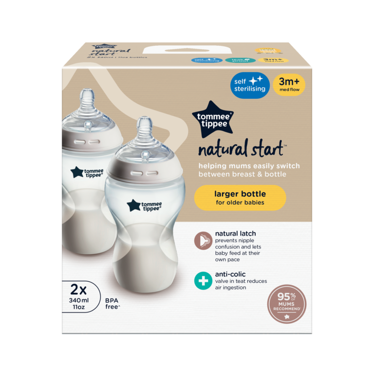 Our most breast-like bottle, ever. Makes switching from breast to bottle and back again, easy*. Soft, silicone teat, that flexes and stretches like a breast Anti-colic valve, to keep gas away from baby’s tummy Speedy self-sterilising, in just three minutes in the microwave 100% leakproof with the lid (even when upside down) It’s also BPA free *Based on placing one bottle in microwaves from 700-1000w