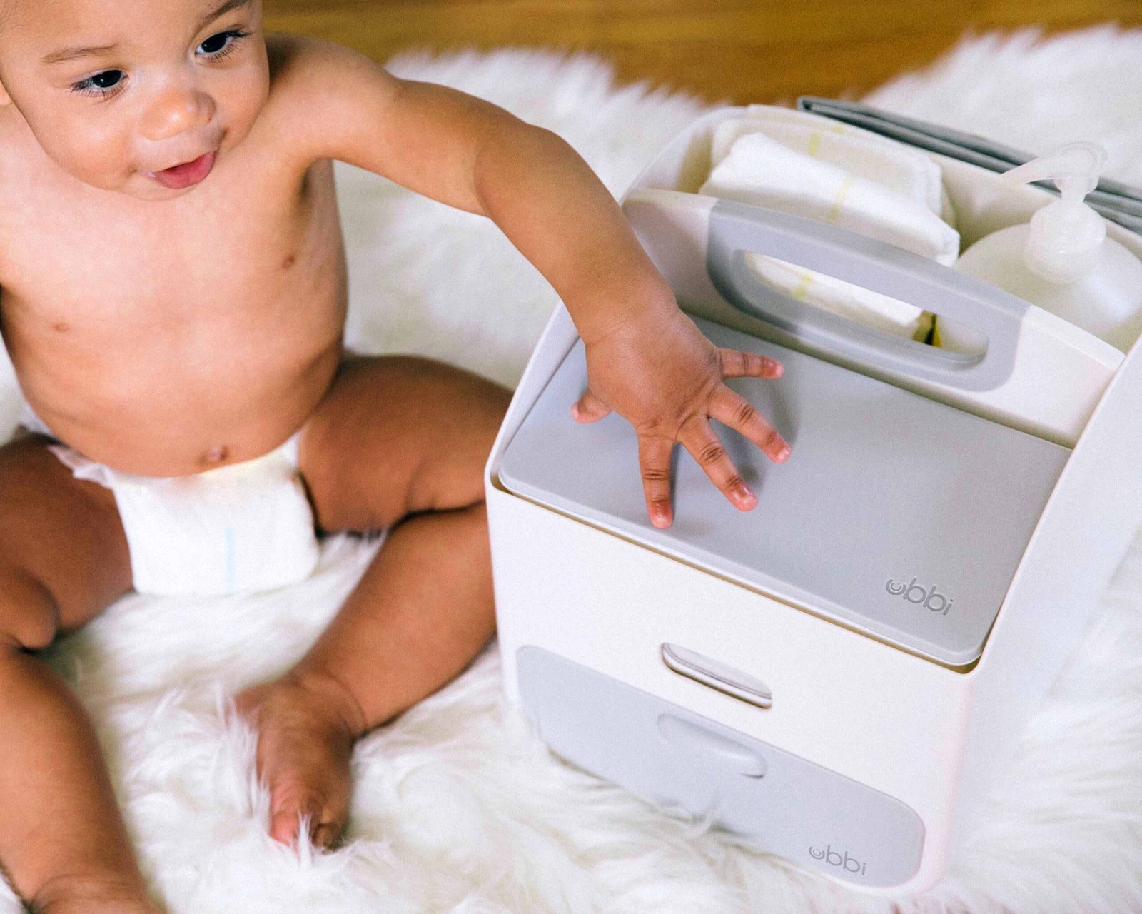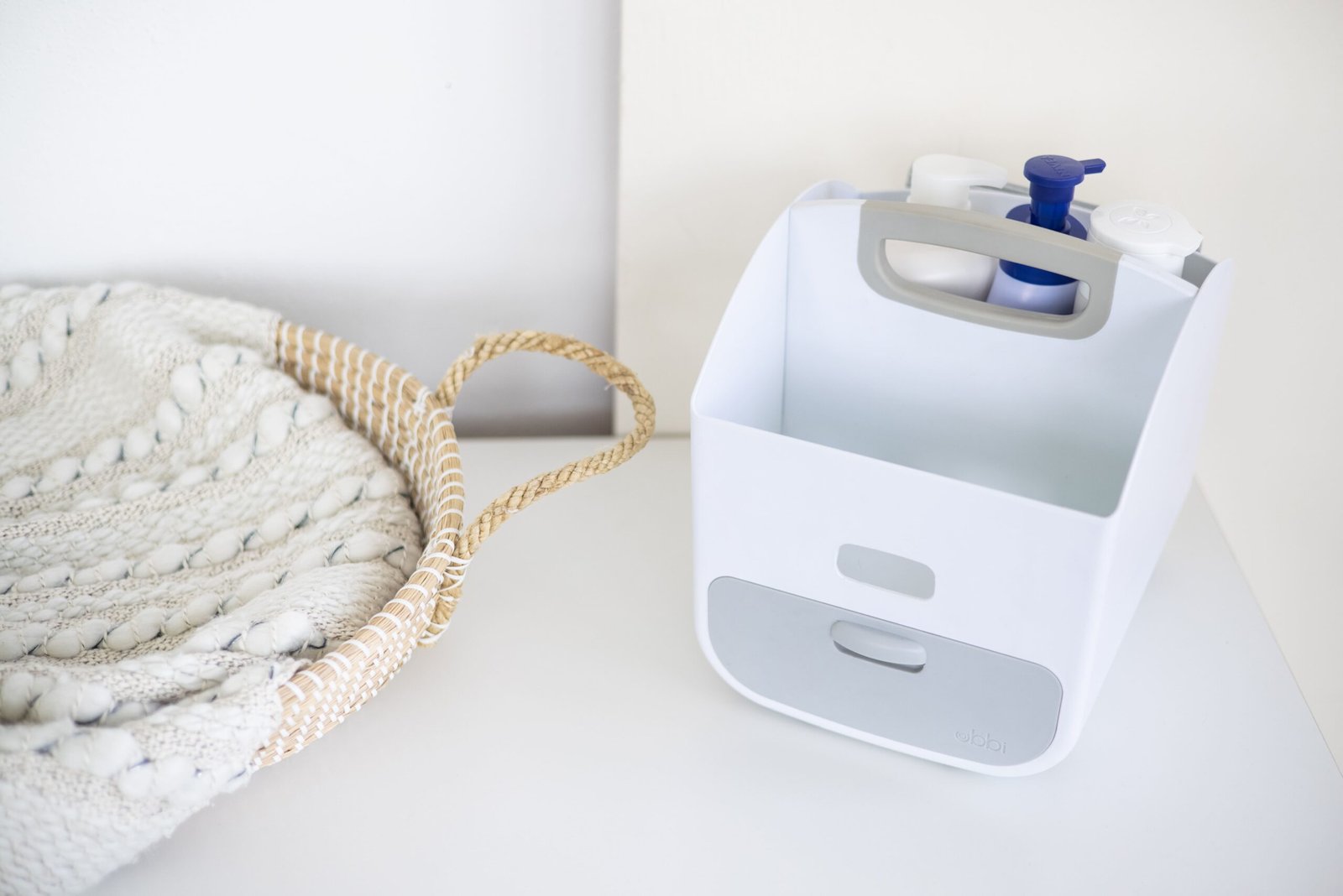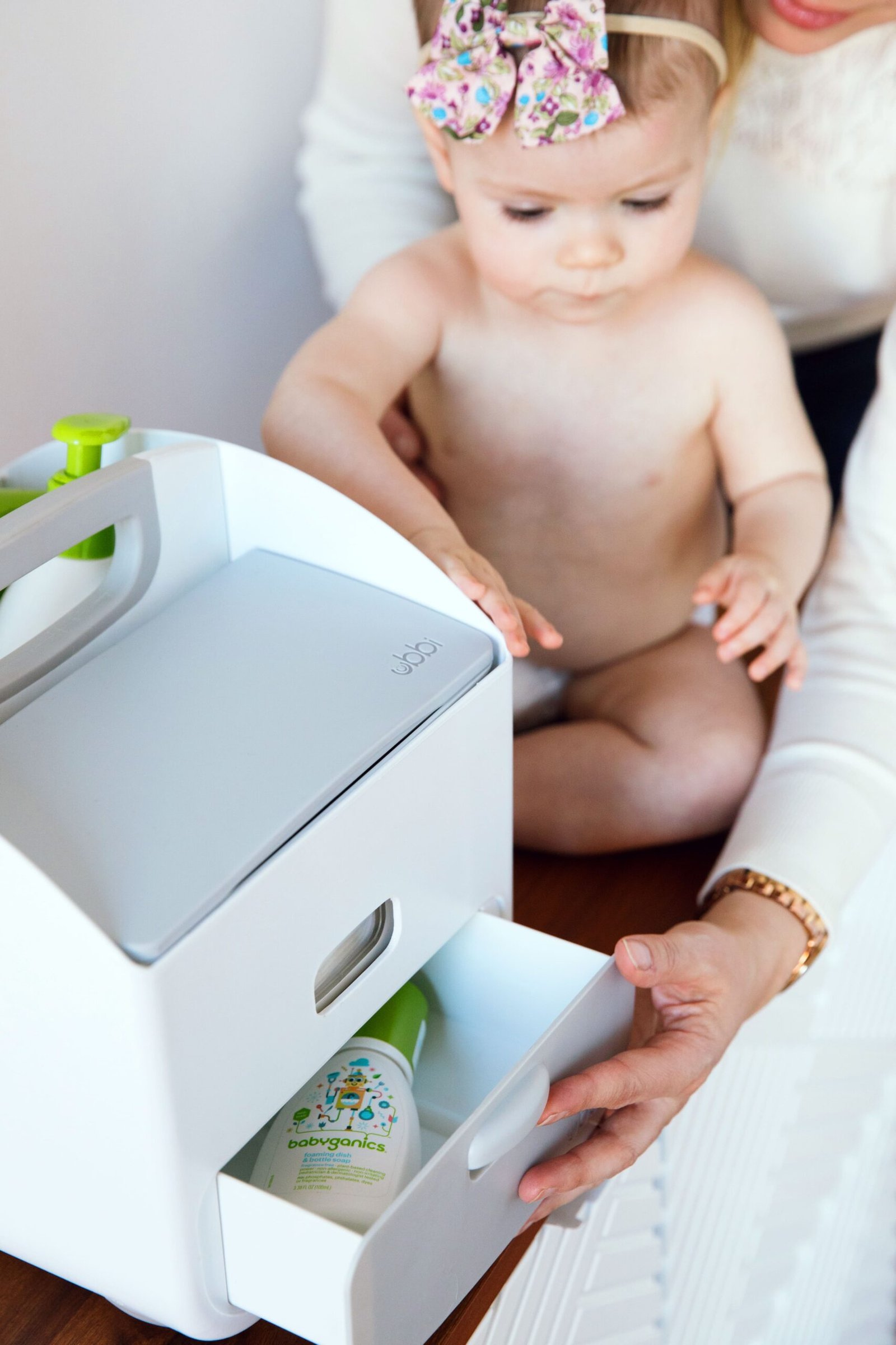 The Ubbi Diaper Storage Caddy and Changing Mat provides parents with convenience, durability and accessibility by having all the diapering supplies organized in one portable storing unit. Made of sturdy plastic, the Ubbi diaper caddy has two main compartments for diapers and wipes, with a drawer for smaller items and a fitted space that includes a comfortable and easy-to-clean changing mat. The caddy also has an integrated handle and non-skid rubber feet allowing it to be carried around or stay safely in one place. While the Ubbi diaper caddy can store most disposable wipes dispensers, it was cleverly designed with…