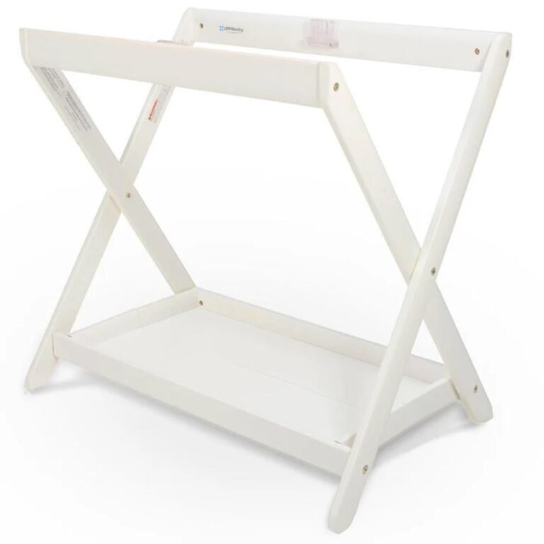 Secure elevated fixture for bassinet that keeps baby up and off the floor Bassinet directly attaches and clicks into stand One-step open and close Extended use as a hamper with the addition of the Bassinet Stand Hamper Insert accessory Convenient tray on bottom Narrow, compact fold for storage Available in grey, espresso and white Does not fit Bassinets 2014 – earlier