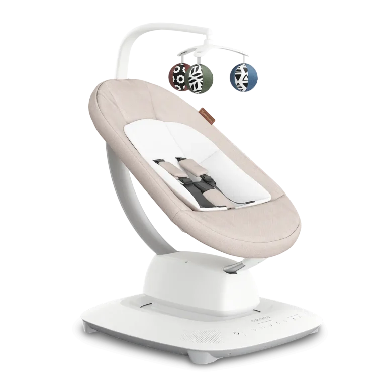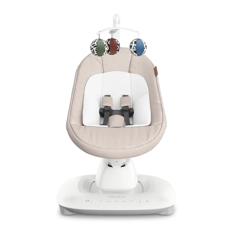 The Mamaroo Smart Swing is designed to move like you do, mimicking your naturalmotion to create the perfect place for the baby to safely relax while you take a break. With five soothing motions, customizable speeds, and smart-home features, it adapts to your baby’s needs while giving you the freedom to focus on yours.What’s included:SwingAC AdapterToy MobileNewborn Support Inser