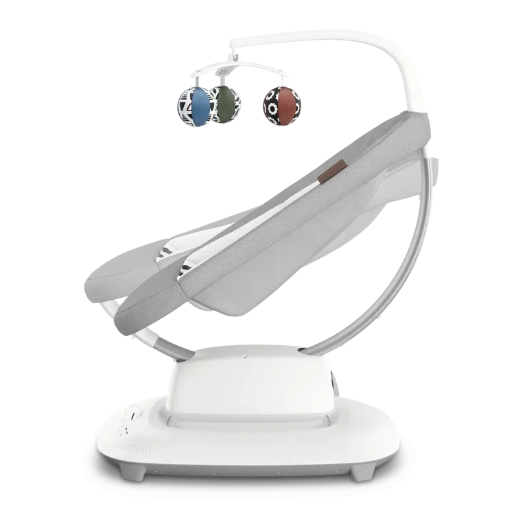 The Mamaroo Smart Swing is designed to move like you do, mimicking your naturalmotion to create the perfect place for the baby to safely relax while you take a break. With five soothing motions, customizable speeds, and smart-home features, it adapts to your baby’s needs while giving you the freedom to focus on yours.What’s included:SwingAC AdapterToy MobileNewborn Support Inser