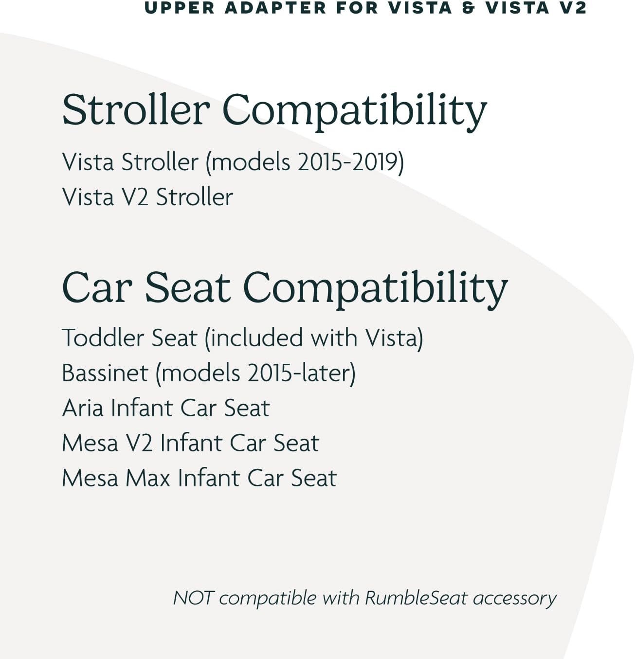 - Broad Compatibility:Â Compatible with Vista models 2015-later, Carrycot models 2015-later, Toddler Seat, and MESA i-SIZE infant car seat (sold separately)
