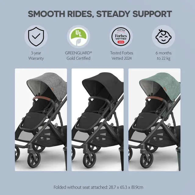 - Never-flat tyres provide hassle-free strolling