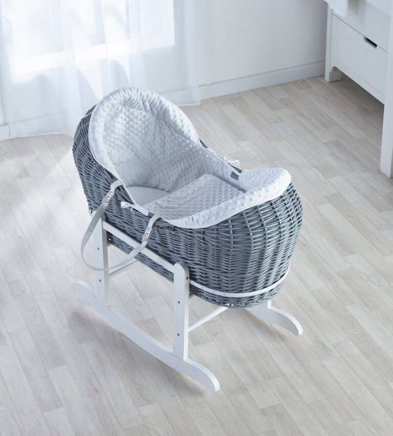 Suitable from newborn, the Kinder White Dimple Grey Pod is a perfect starter bed for your little one. This handmade wicker pod basket comes with a soft padded dimple surround, an embroidered coverlet, and includes a comfortable mattress to create a cosy sleeping space for your precious little one. The mattress is water resistant and breathable, allowing easy air movement and heat dissipation around your baby’s body, keeping them cosy all night long. The mattress is also washable. A good balance between comfort and style, our Dimple Pod will ensure safe and sound sleeping for you and your baby due to the softness of the bedding. Stand not included.