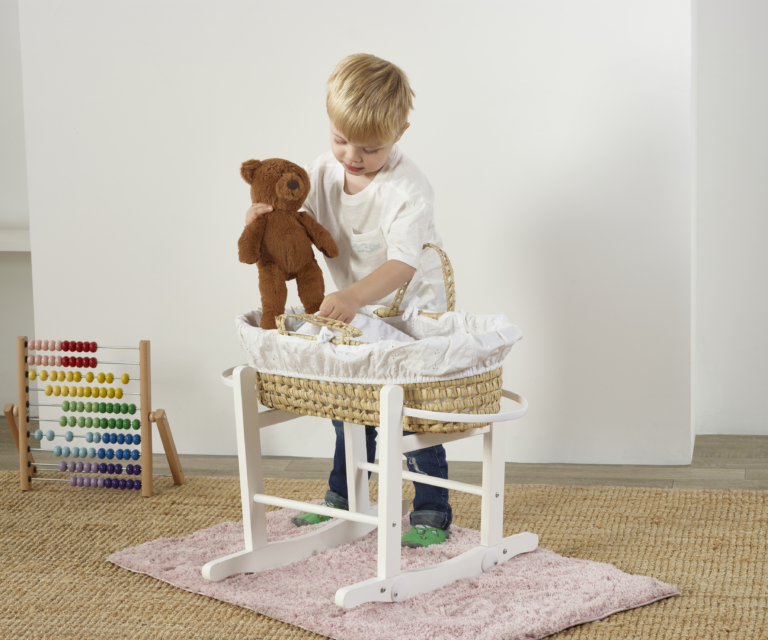 A minitaure sized replica of our BA White Moses Basket, this dolls basket will keep your child entertained for hours. A great bed for dolls and teddy’s, the BA Dolls basket bedding is made from easy care polycotton which can be machine washed. This product is only suitable for children from 36 months. Stand NOT Included.
