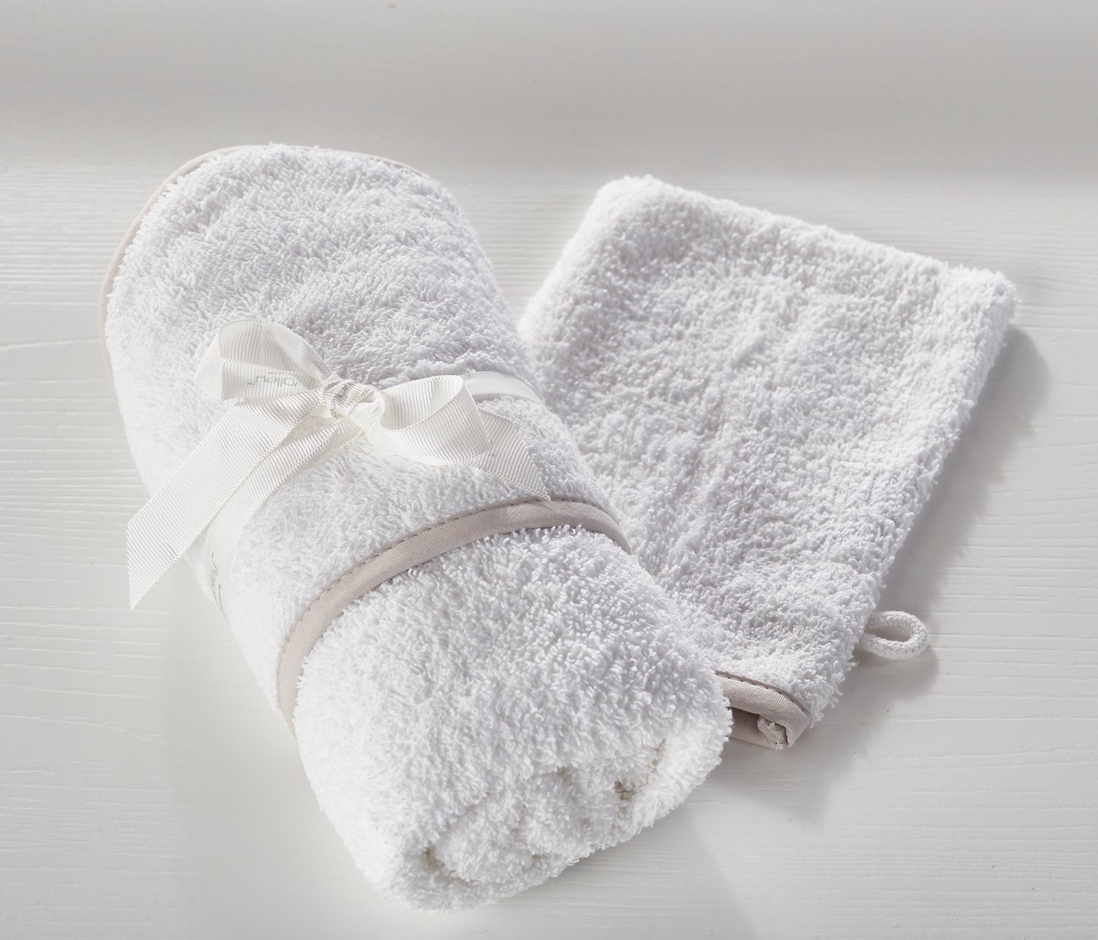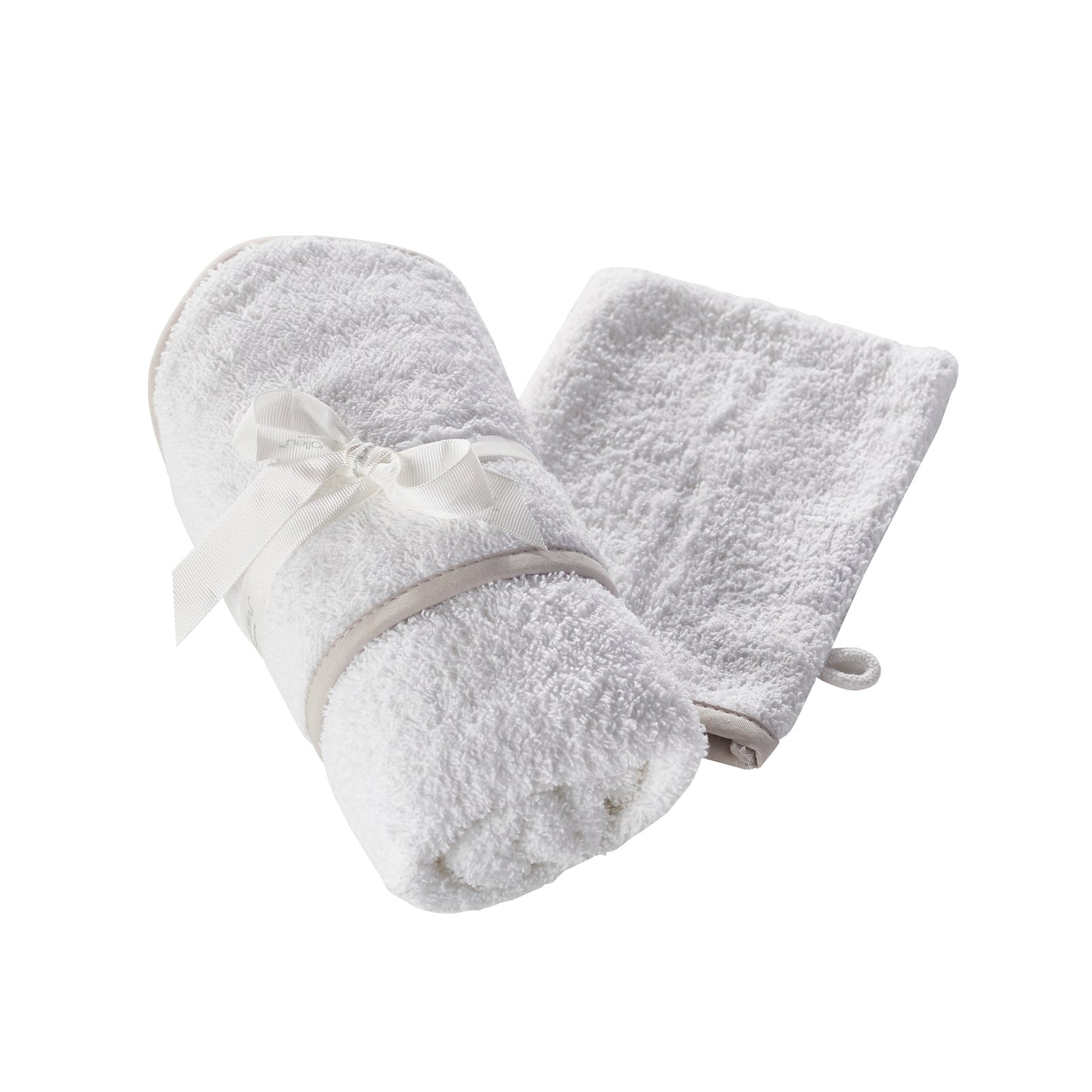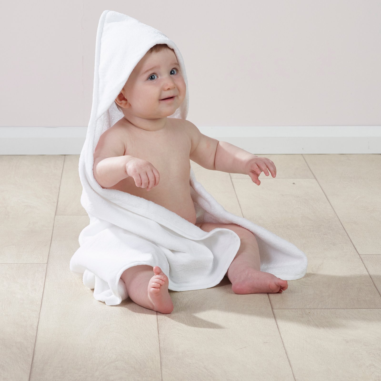 Wrap up after bath time with our white hooded towel, 100% cotton this product is soft on yours baby skin and will get them dry in no time. the wash mitt is perfect for gently washing your baby.
