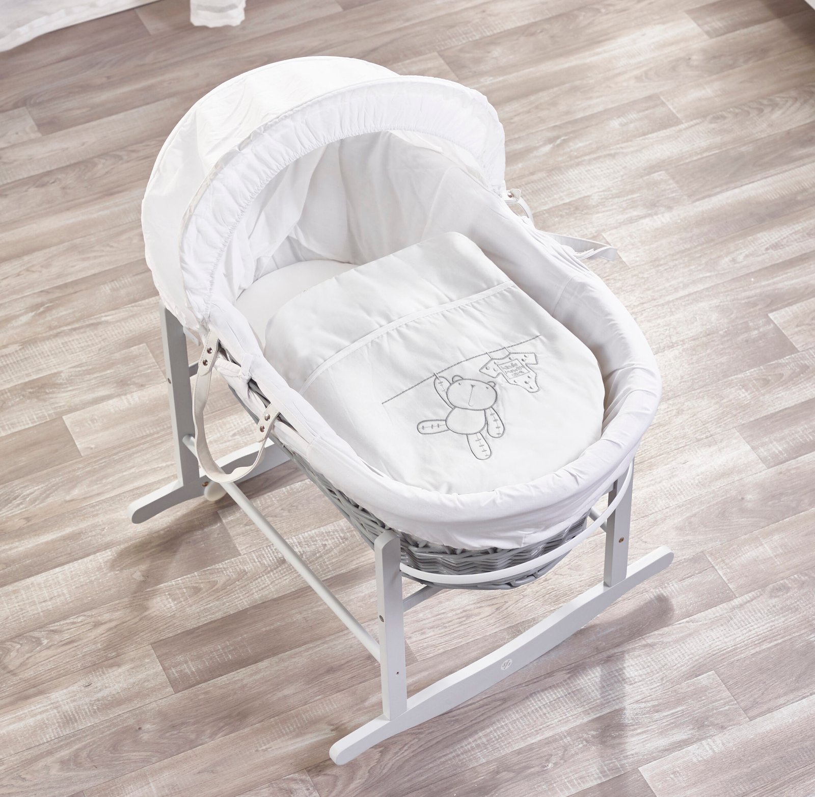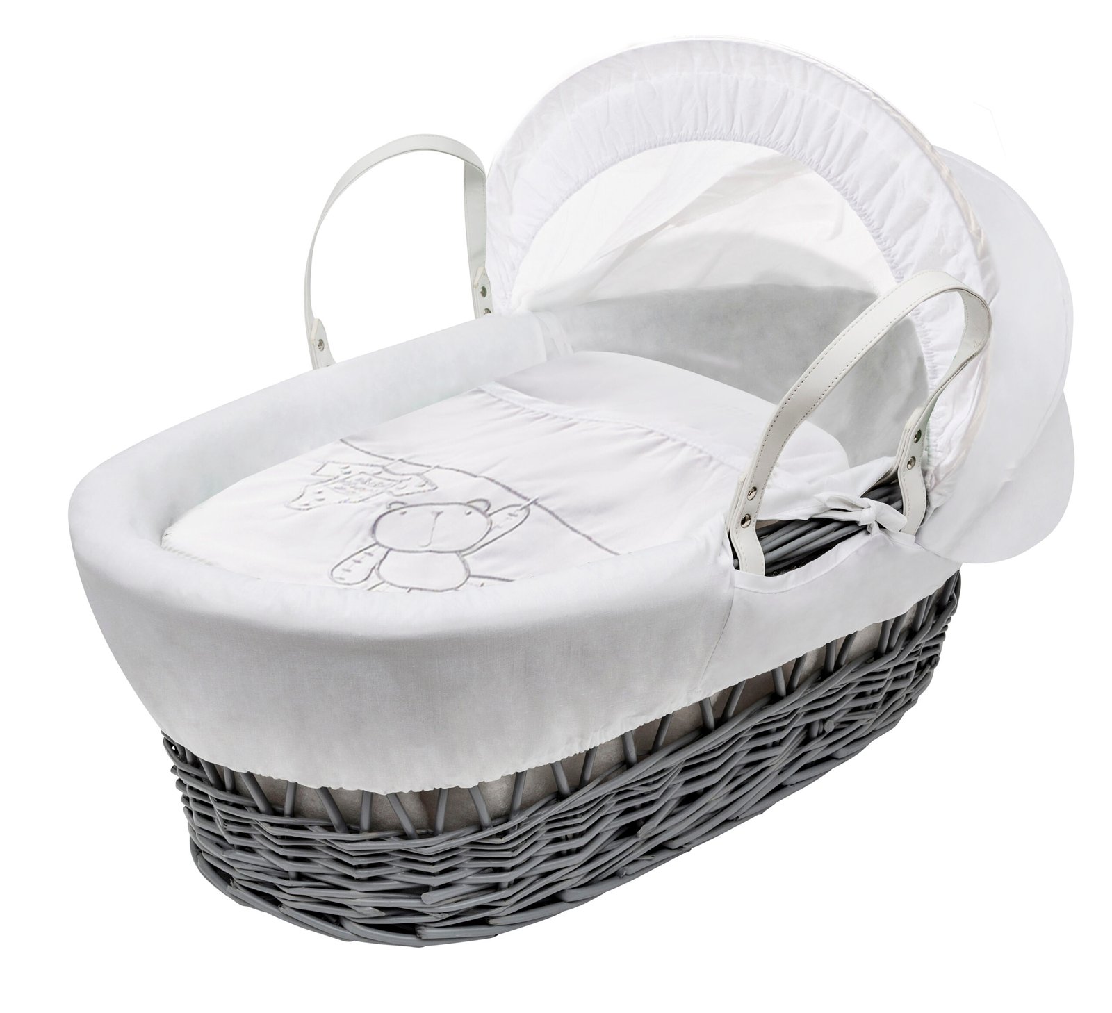 This is White Teddy Wash Day, his home is our white poly-cotton bedding which is easily washed and cared for. It has a comfy padded surround, includes a comfortable mattress and has an adjustable hood perfect to create a cosy sleeping space for your precious little one. The Hood can be adjusted and tightened using the fasteners on either side. The mattress is water resistant and breathable allowing easy air movement and heat dissipation around your baby’s body keeping them cosy all night long. The mattress is also washable, just in case of any little spillages! A good balance between comfort and style, our White Teddy Wash Day Moses Basket will ensure safe and sound sleeping for you and your baby. Stand not included. This product should not be used as a carrycot. Under no circumstances should you carry your baby in the Moses basket. Handles are for easy portability of the Moses Basket only.