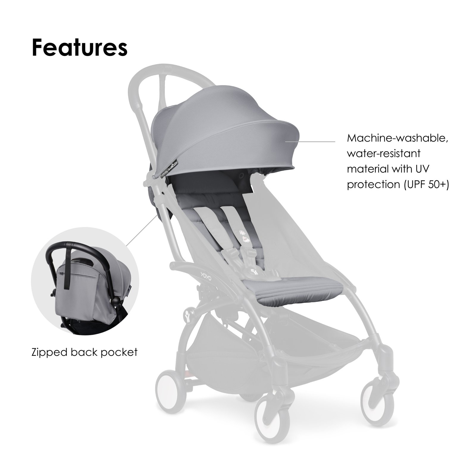 Refresh your YoYo stroller with the stylish and functional YoYo Color Pack 6+ in Stone. This durable fabric set is designed for babies aged 6 months and up, offering a comfortable padded seat and canopy for your growing child. The sleek Stone color adds a modern, neutral touch, perfectly complementing any stroller setup. Easy to install and machine-washable, the YoYo Color Pack 6+ provides a fresh look and added comfort for your little one while ensuring long-lasting use. Transform your stroller in minutes with this must-have accessory.